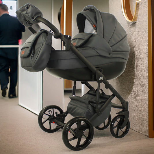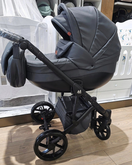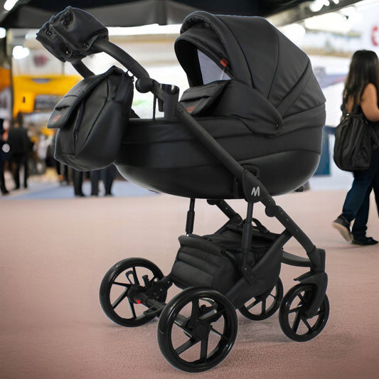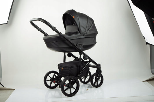 Wózek dziecięcy Mommo AAA 2w1 wielofunkcyjny| Czarna Eko-skóra