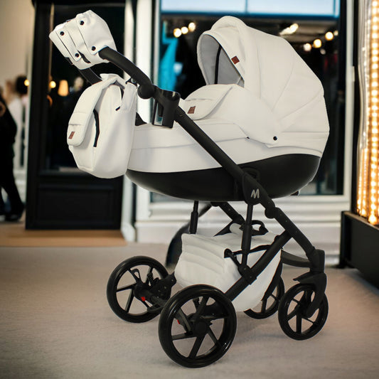Wózek dziecięcy Mommo AAA 2w1 wielofunkcyjny| Biała Eko-skóra