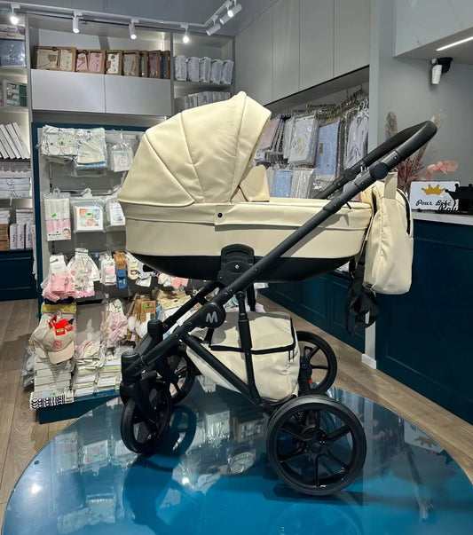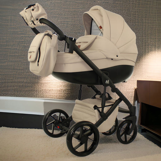 Wózek dziecięcy Mommo AAA 2w1 wielofunkcyjny| Vanilla Eko-skóra