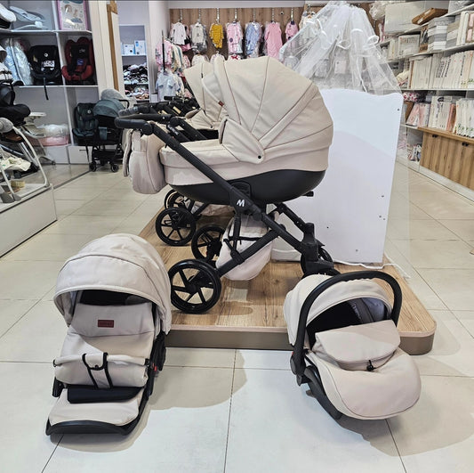 Wózek dziecięcy Mommo AAA 3w1 wielofunkcyjny|Vanilla Eko-skóra