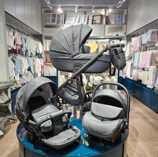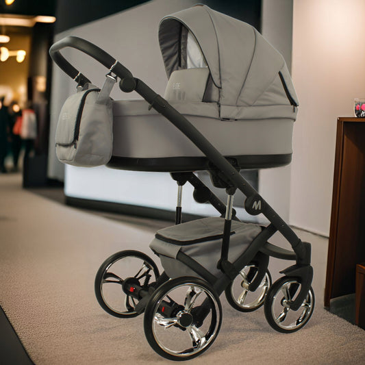 MOMMO ELITE Ekskluzywny Wózek Dziecięcy Wielofunkcyjny - Szary - 3w1