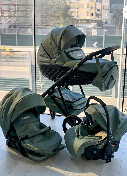 Wózek dziecięcy Mommo AAA 3w1 wielofunkcyjny|Mint Eko-skóra