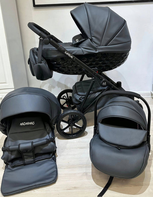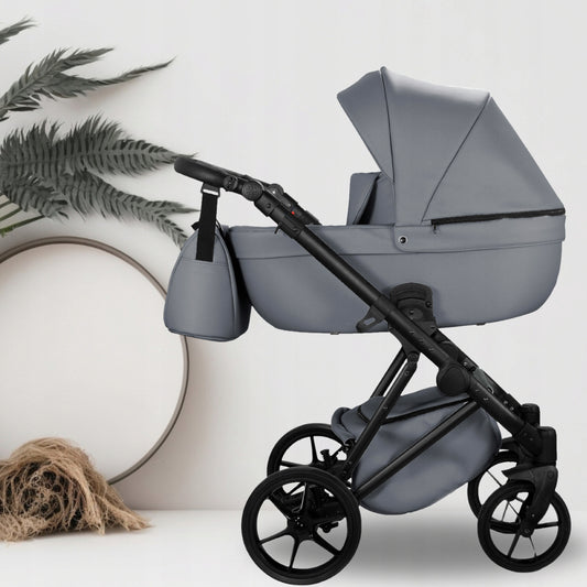 MOMMO SUPREME Ekskluzywny Wózek dziecięcy - Szara eko skóra - 3w1