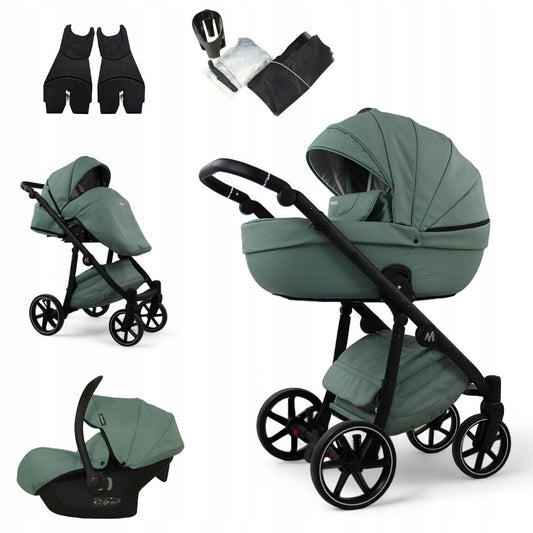Wózek Dziecięcy MOMMO DELUXE 3w1 |Mint Ekoskóra