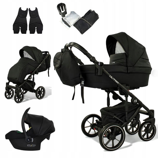 MOMMO ULTRA Czarny Wózek Wielofunkcyjny 3w1 + Fotelik Cosmo I-size