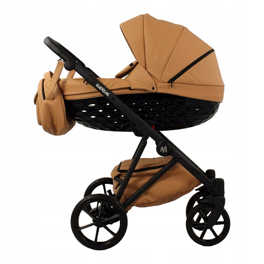 MOMMO SUPREME Ekskluzywny Wózek dziecięcy - Karmel Eko-Skóra - 3w1
