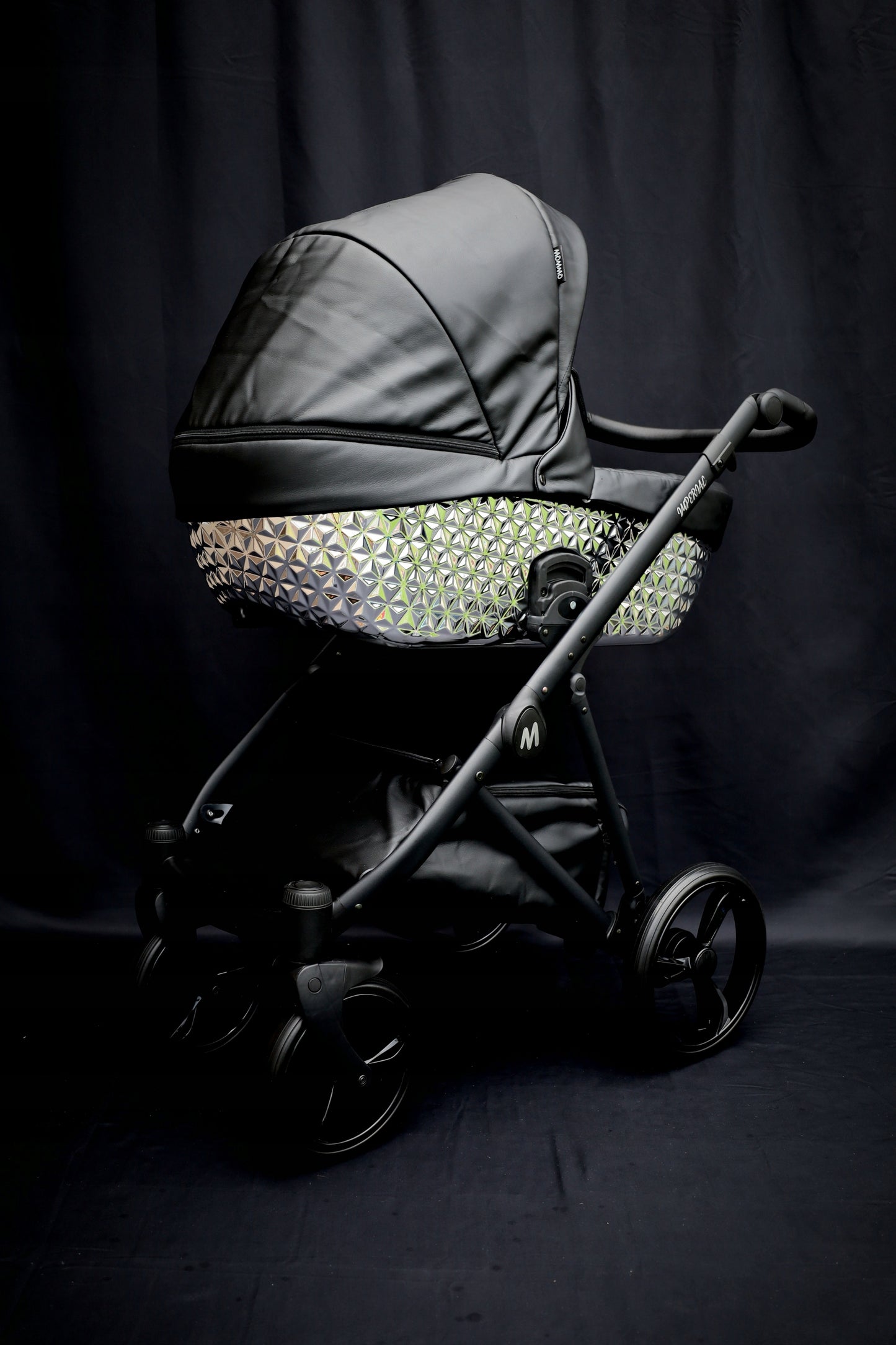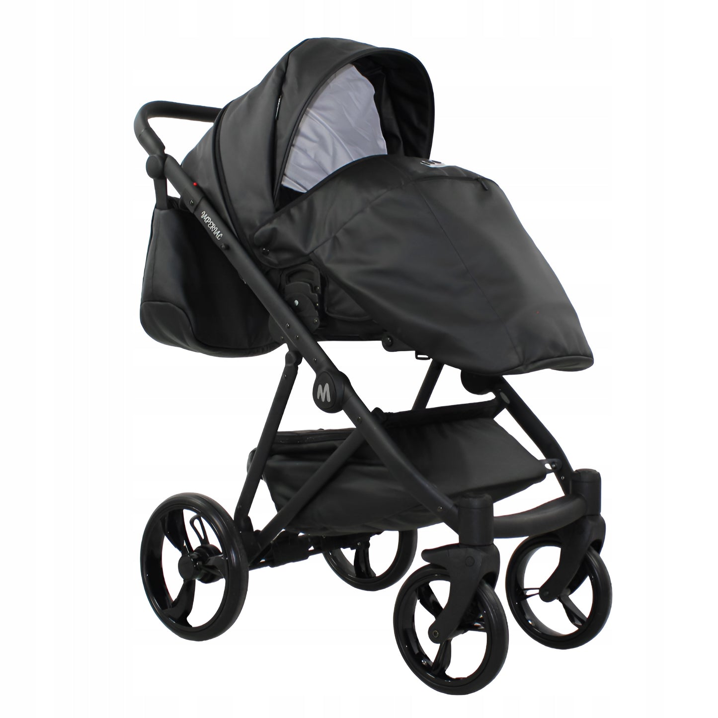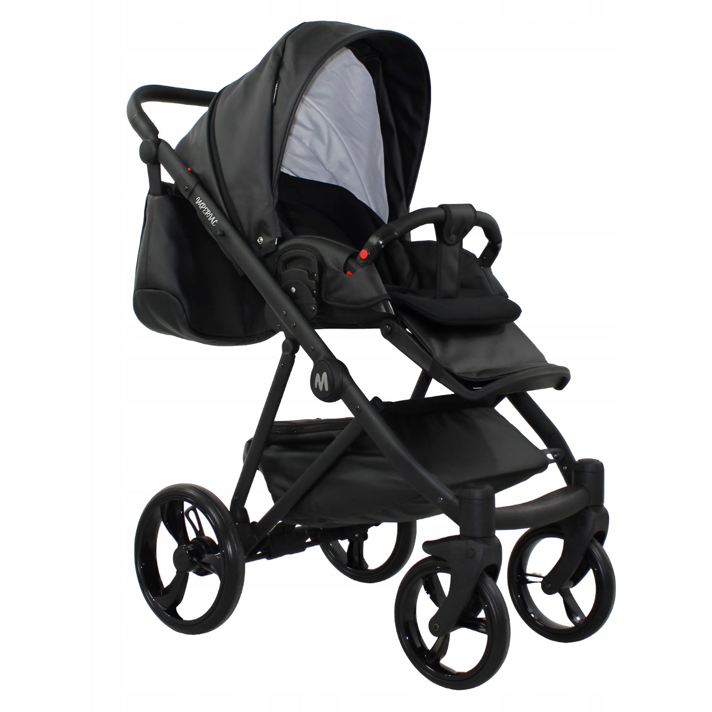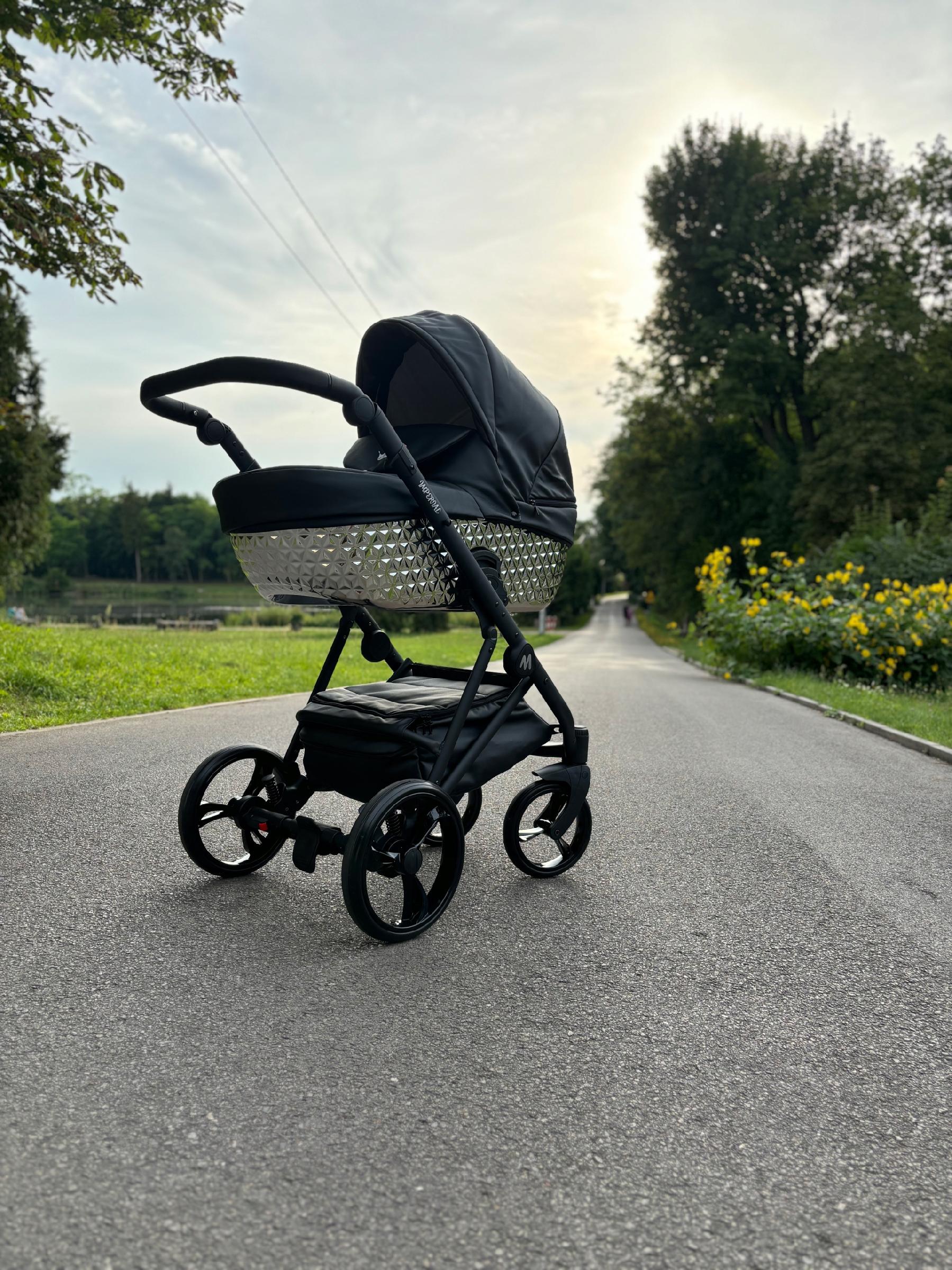 MOMMO IMPERIAL Ekskluzywny Wózek Dziecięcy - Black Silver Eko Skóra - 3w1