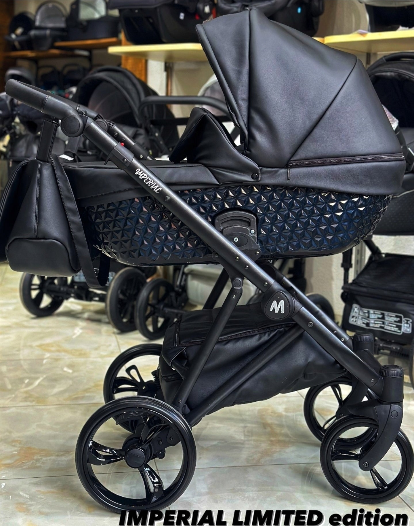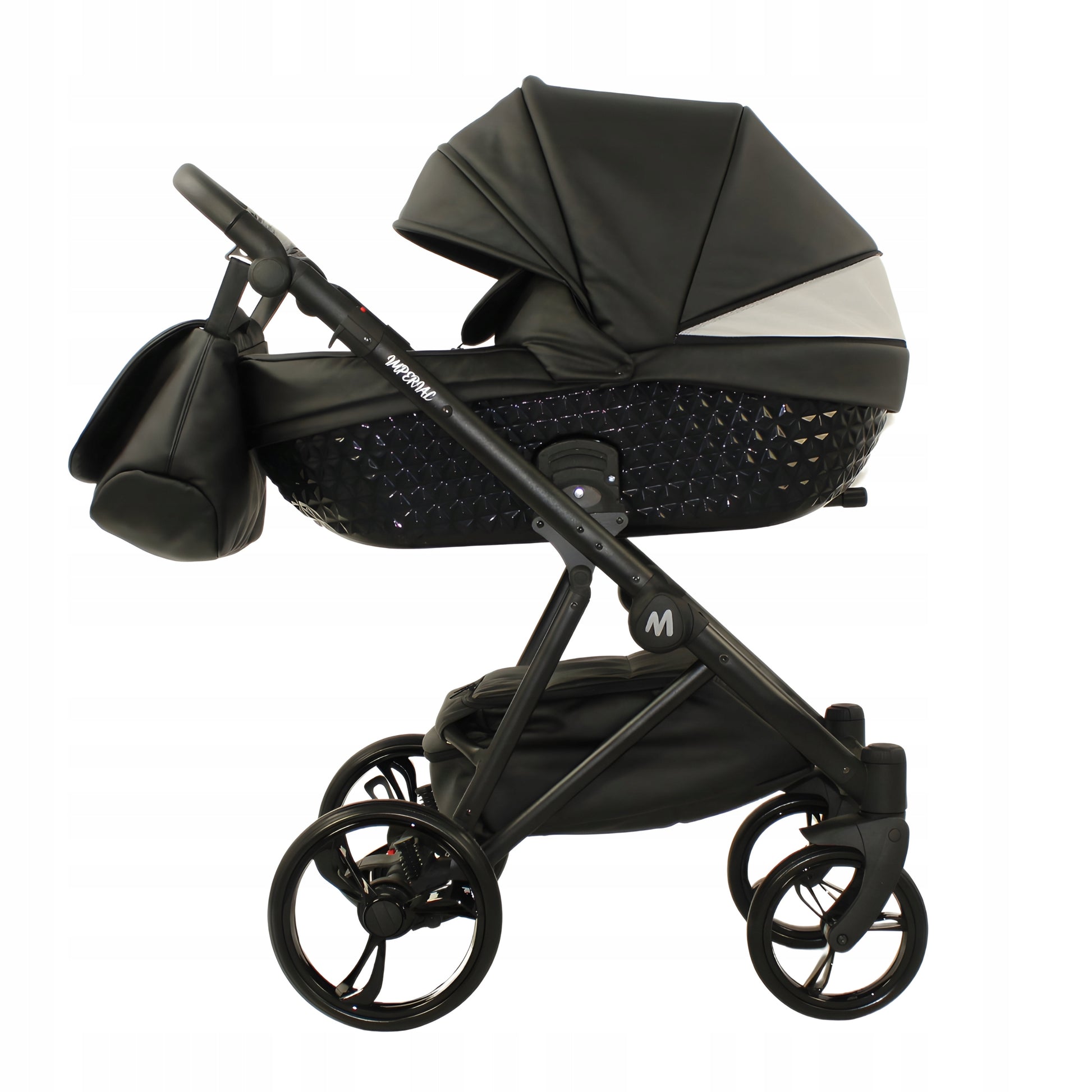 MOMMO IMPERIAL Ekskluzywny Wózek Dziecięcy - Czarna Eko Skóra - 2w1