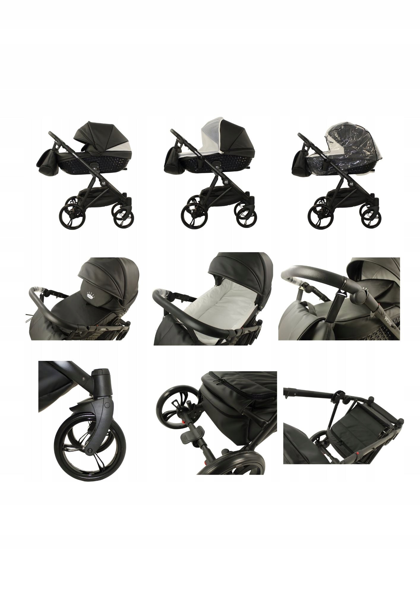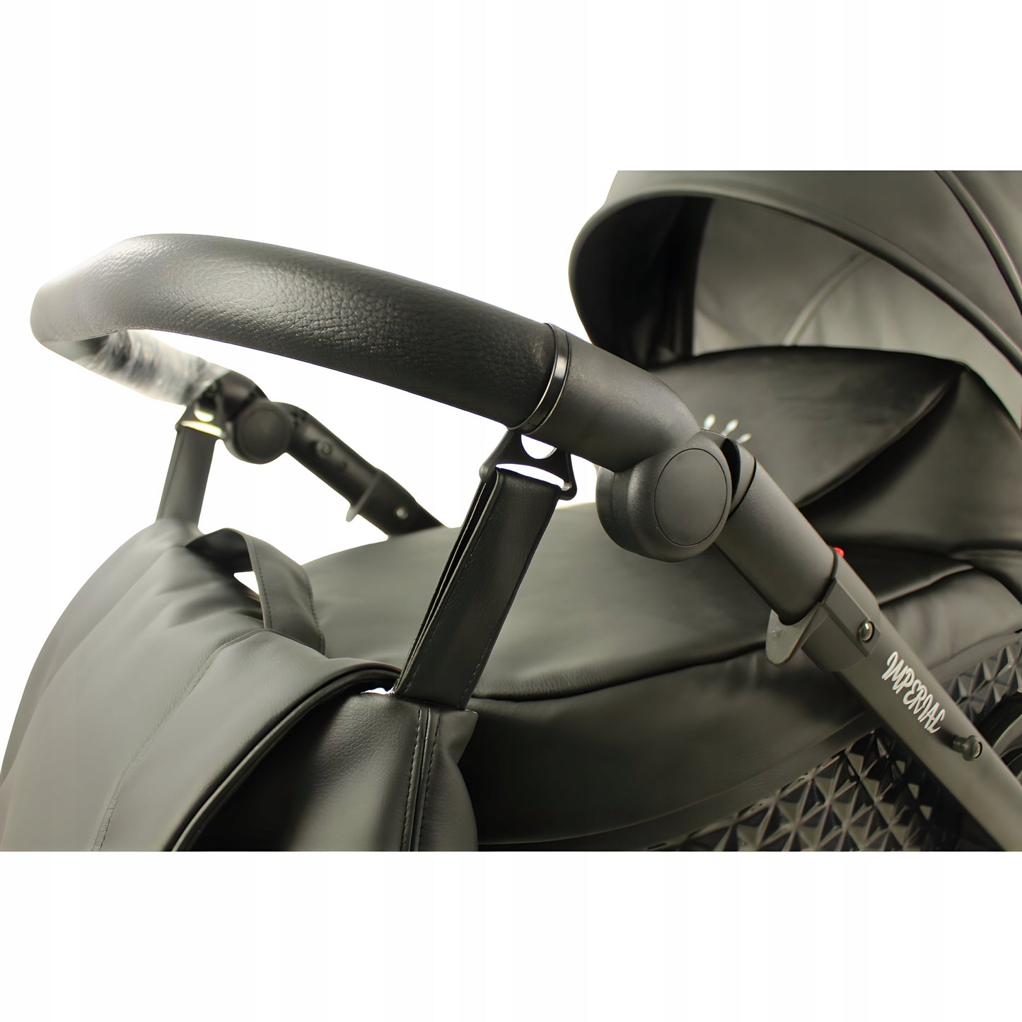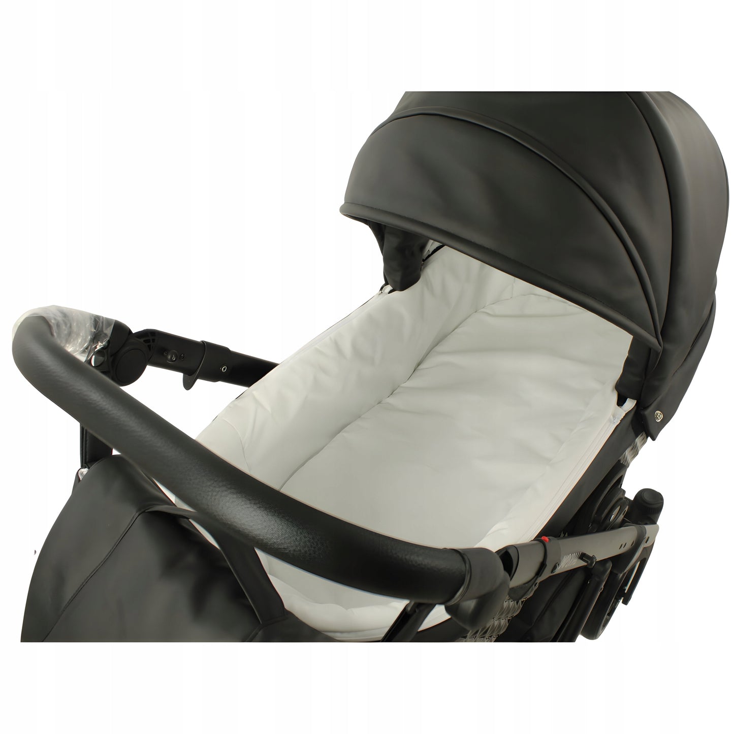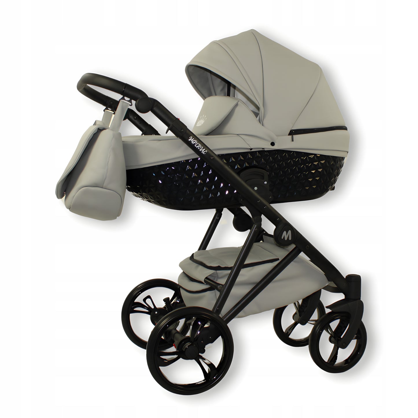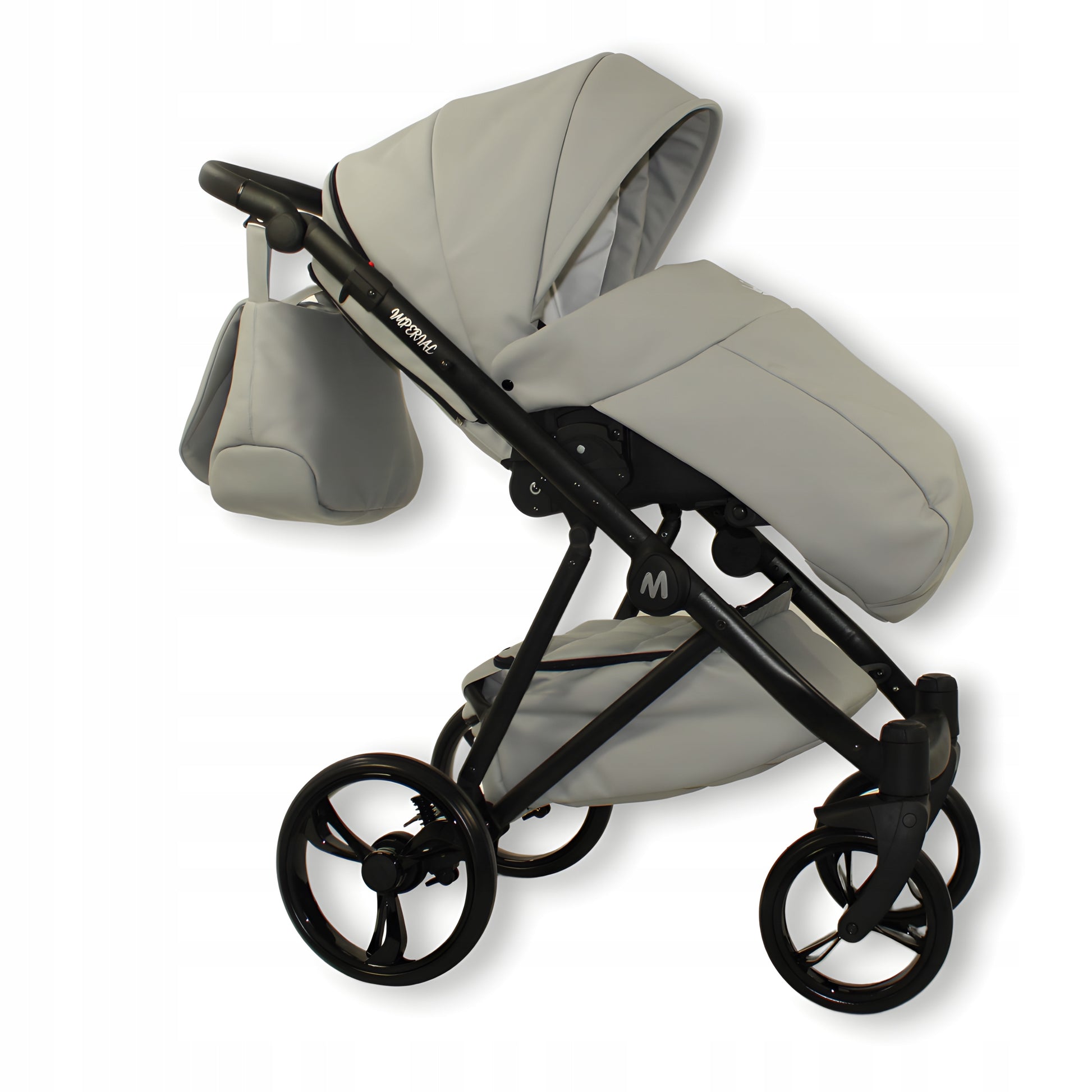 MOMMO IMPERIAL Ekskluzywny Wózek Dziecięcy - Srebrna Eko Skóra - 2w1