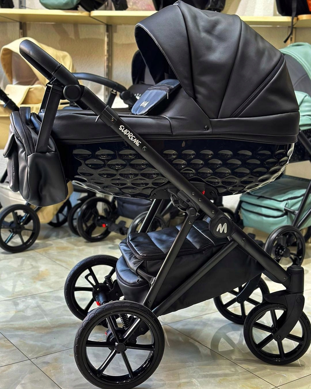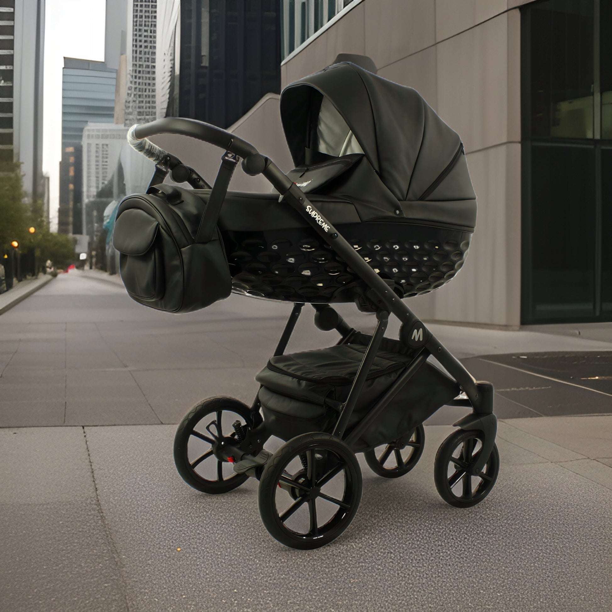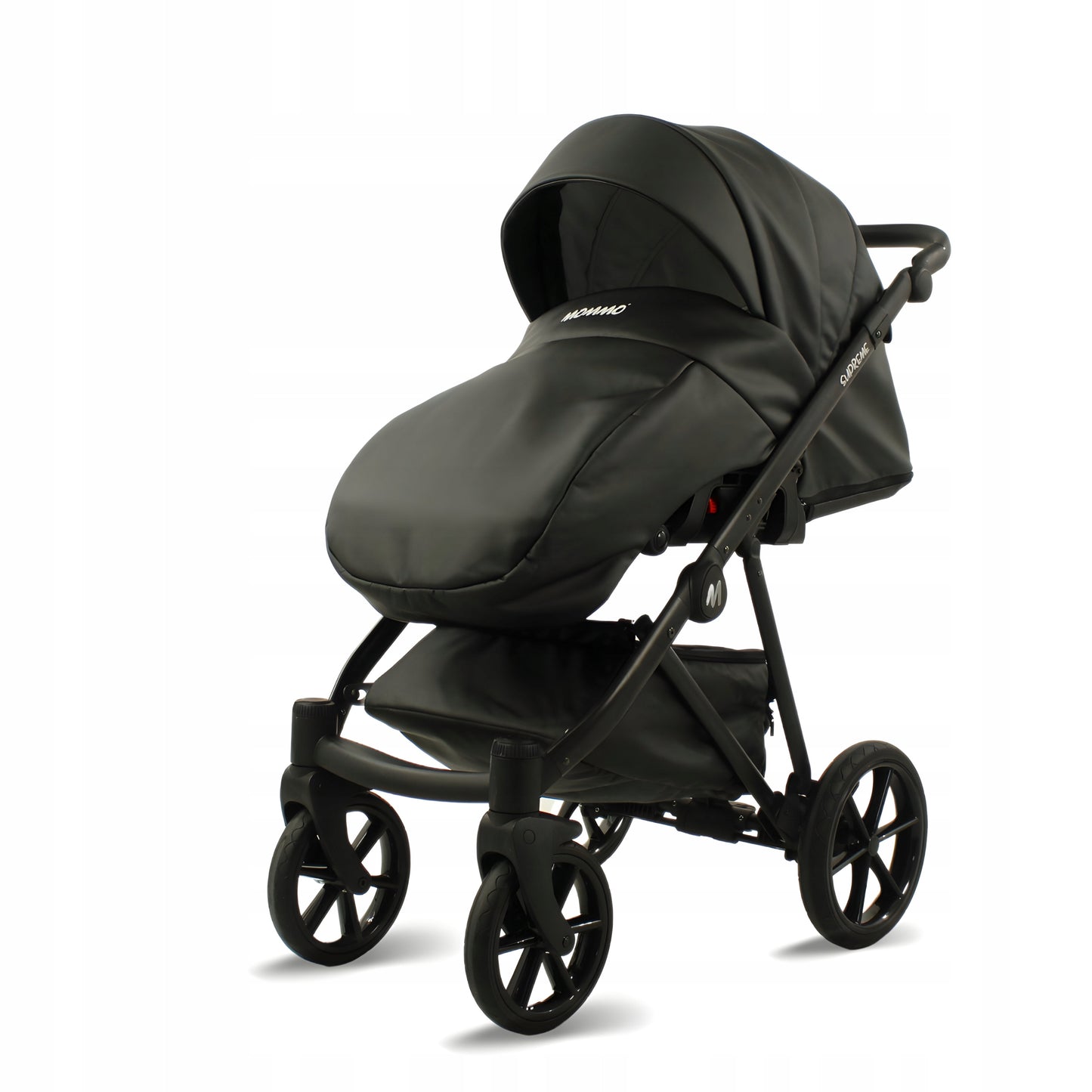 MOMMO SUPREME Ekskluzywny Wózek dziecięcy - Czarna eko skóra - 2w1