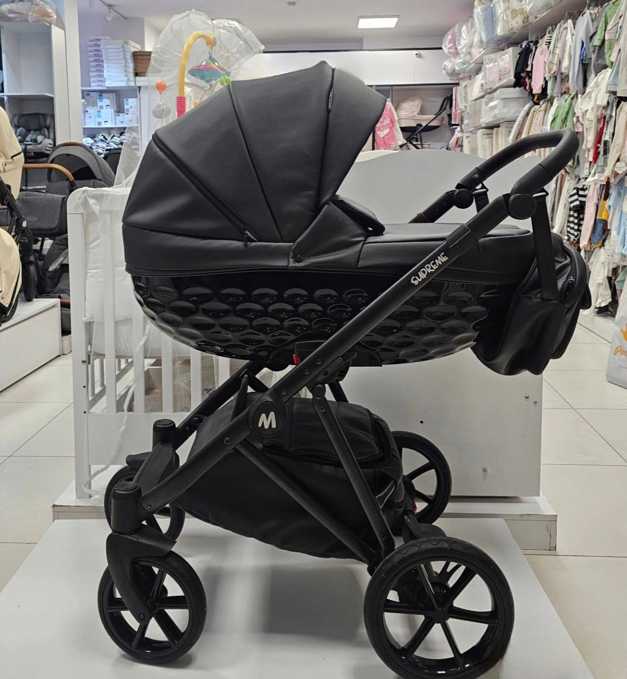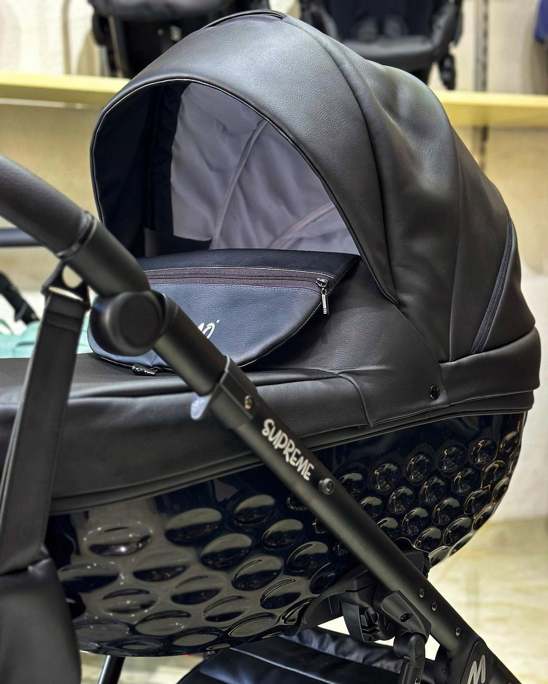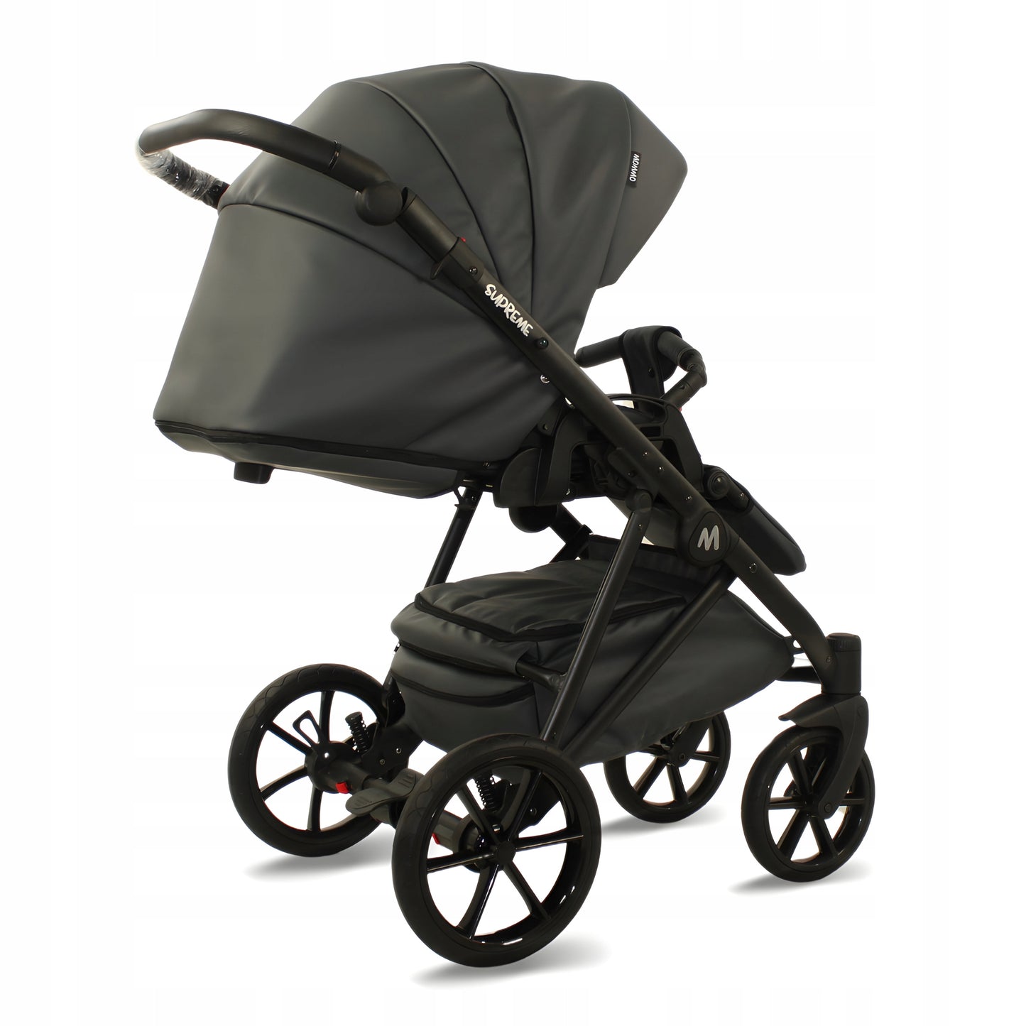 MOMMO SUPREME Ekskluzywny Wózek dziecięcy - Czarna eko skóra - 2w1