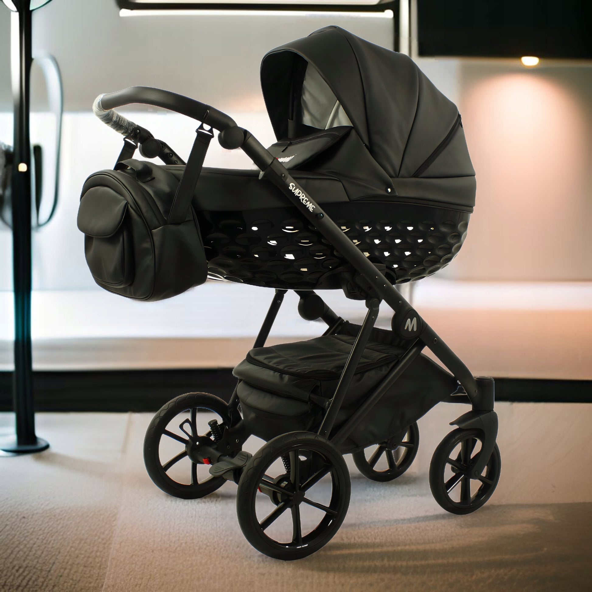 MOMMO SUPREME Ekskluzywny Wózek dziecięcy - Eko skóra - 3w1 Cosmo Fotelik