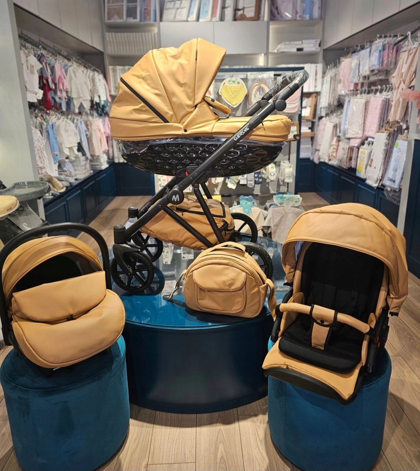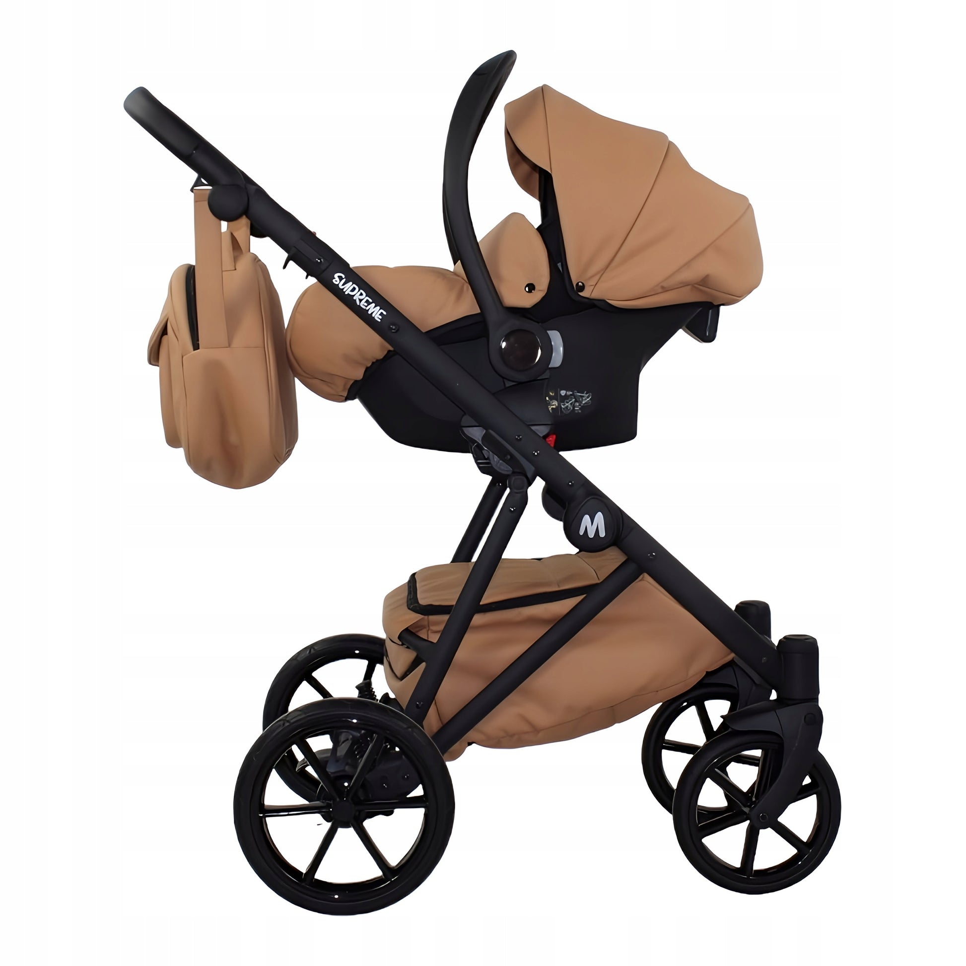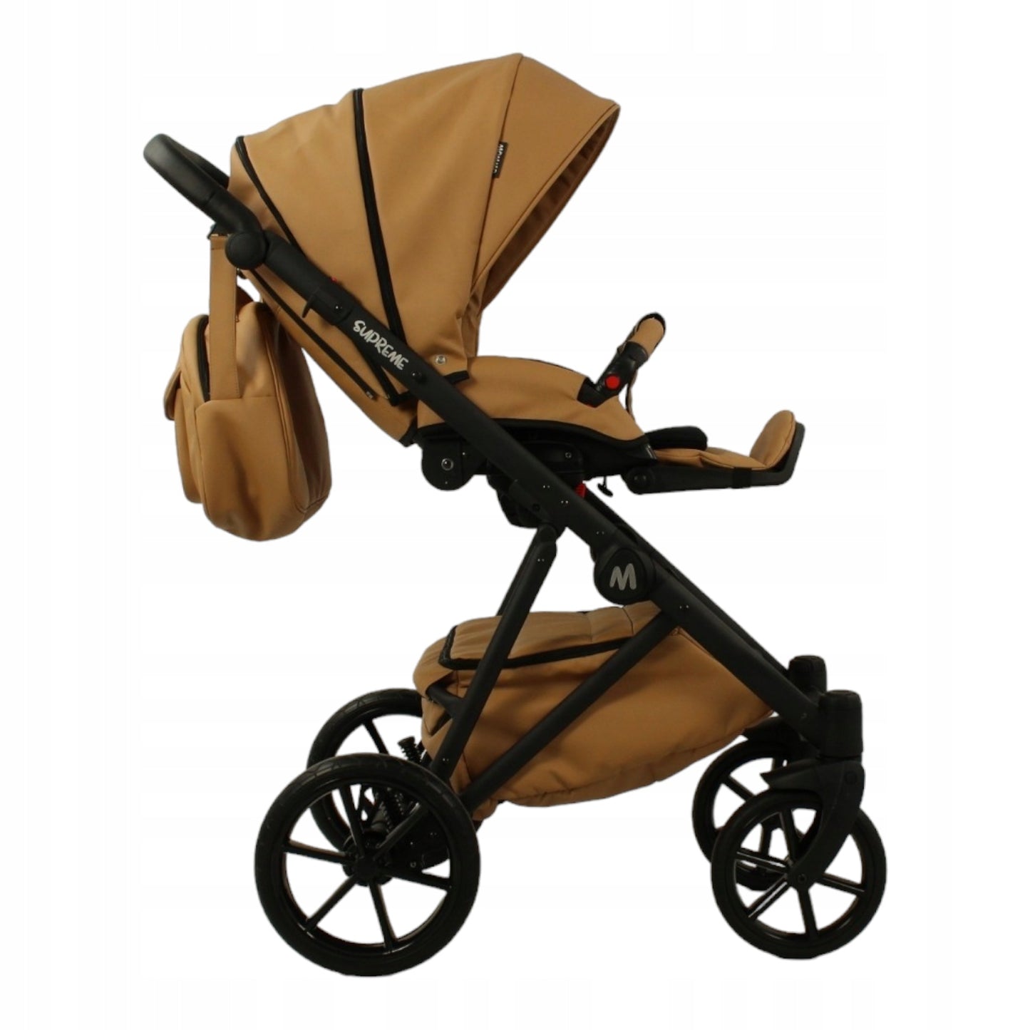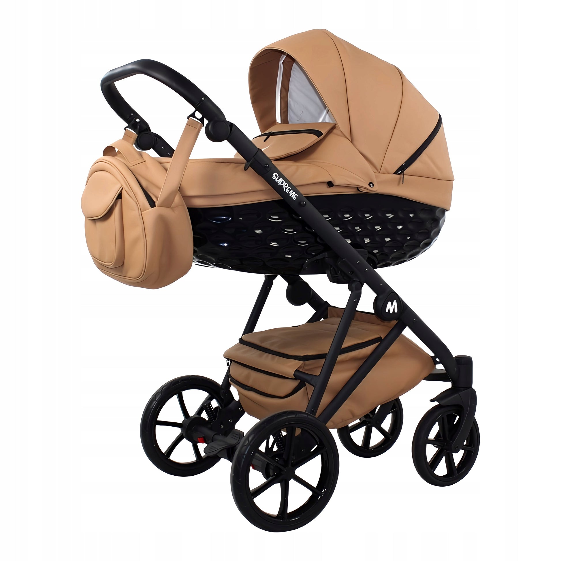 MOMMO SUPREME Ekskluzywny Wózek dziecięcy - Karmel Eko-Skóra - 3w1