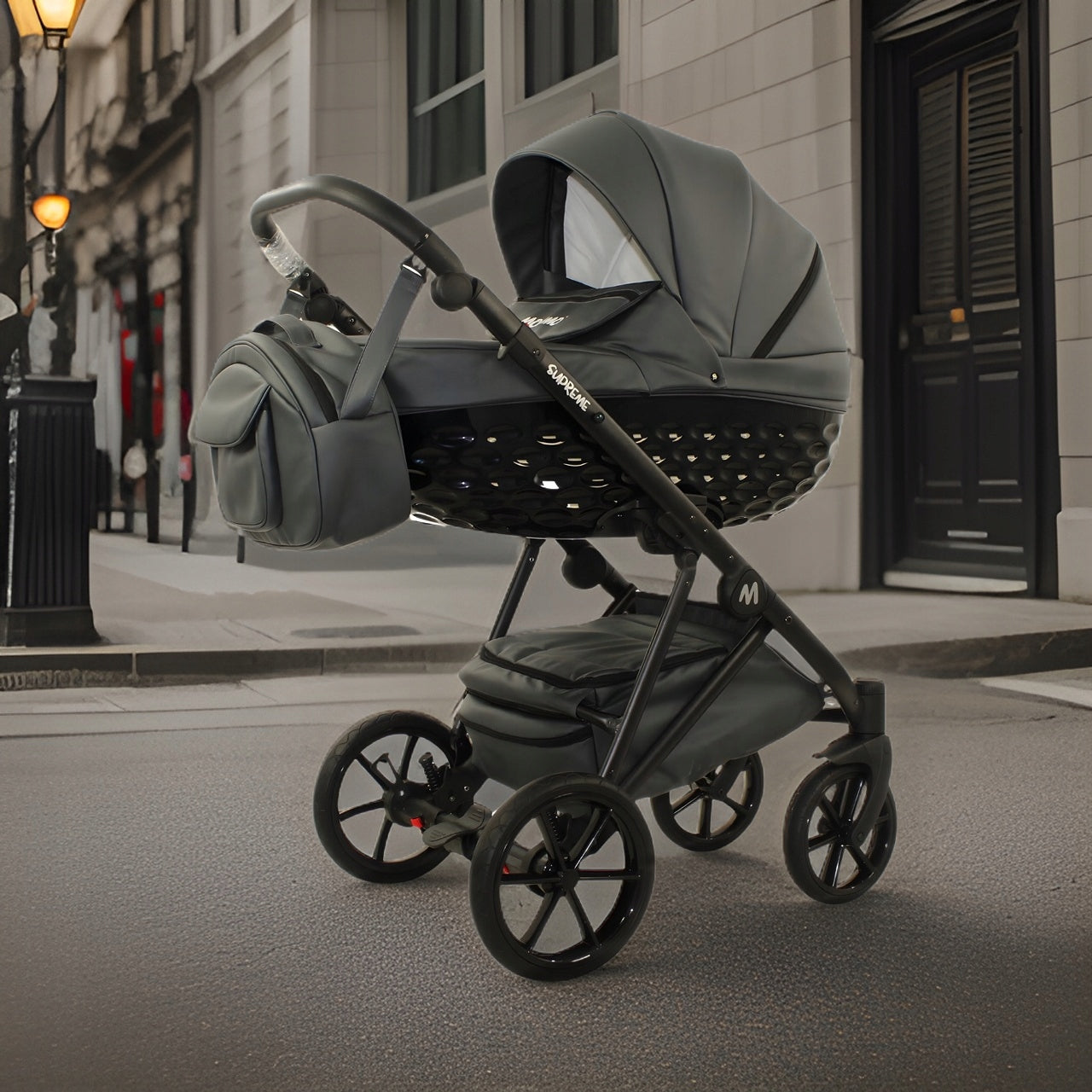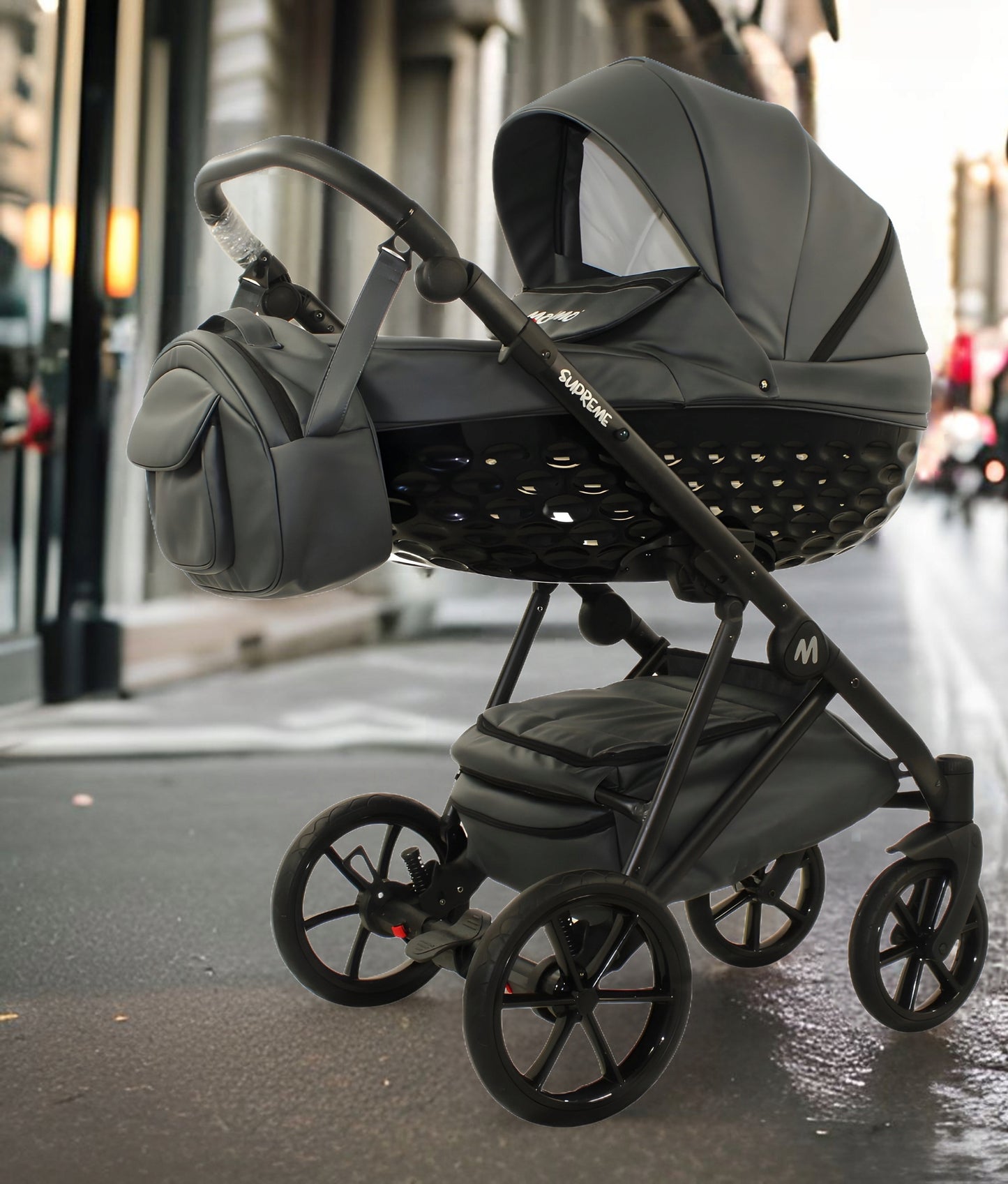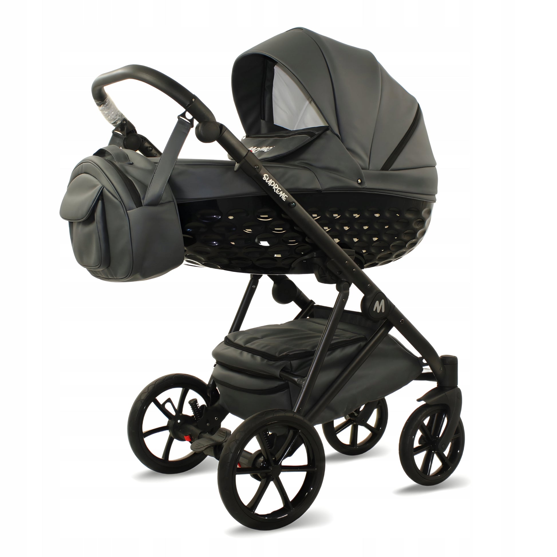 MOMMO SUPREME Ekskluzywny Wózek dziecięcy - Szara eko skóra - 3w1