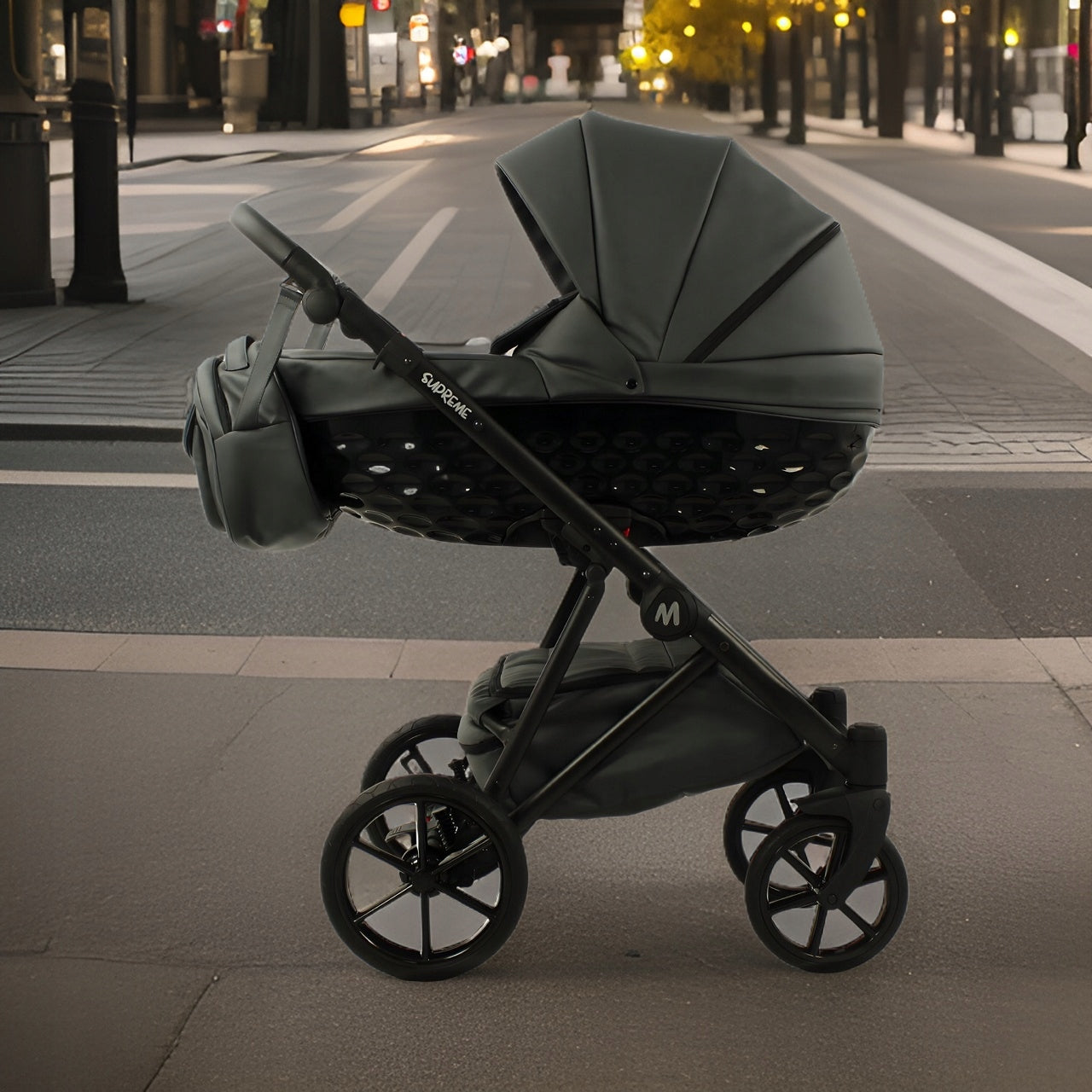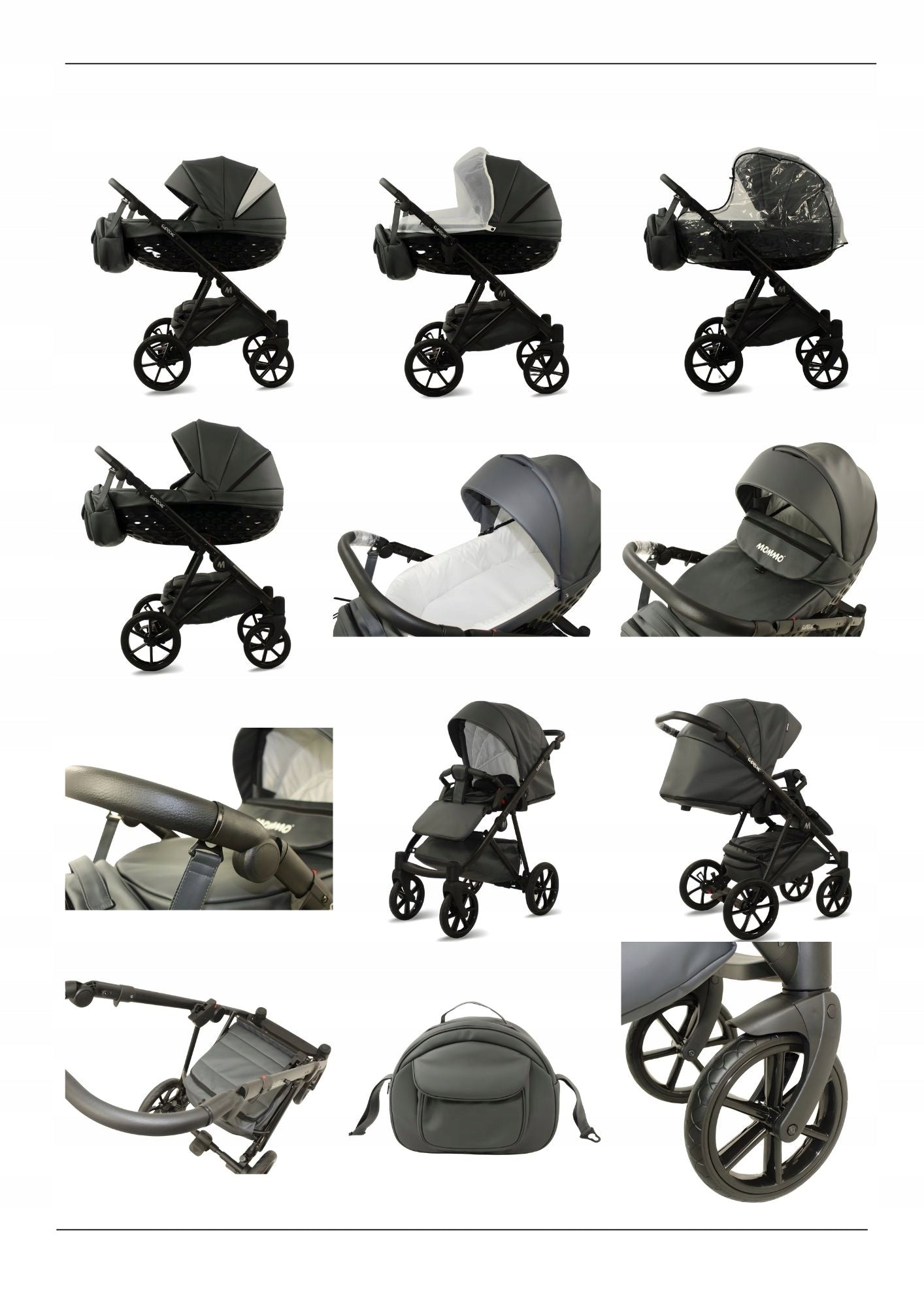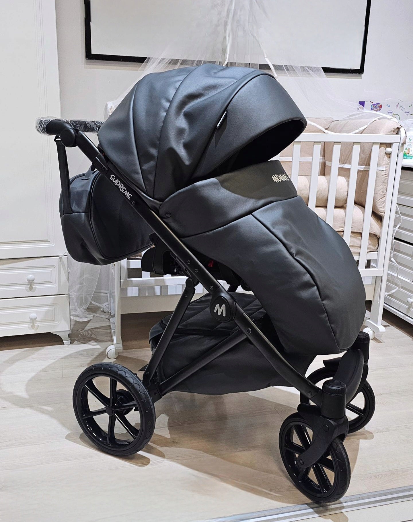 MOMMO SUPREME Ekskluzywny Wózek dziecięcy - Szara eko skóra - 3w1