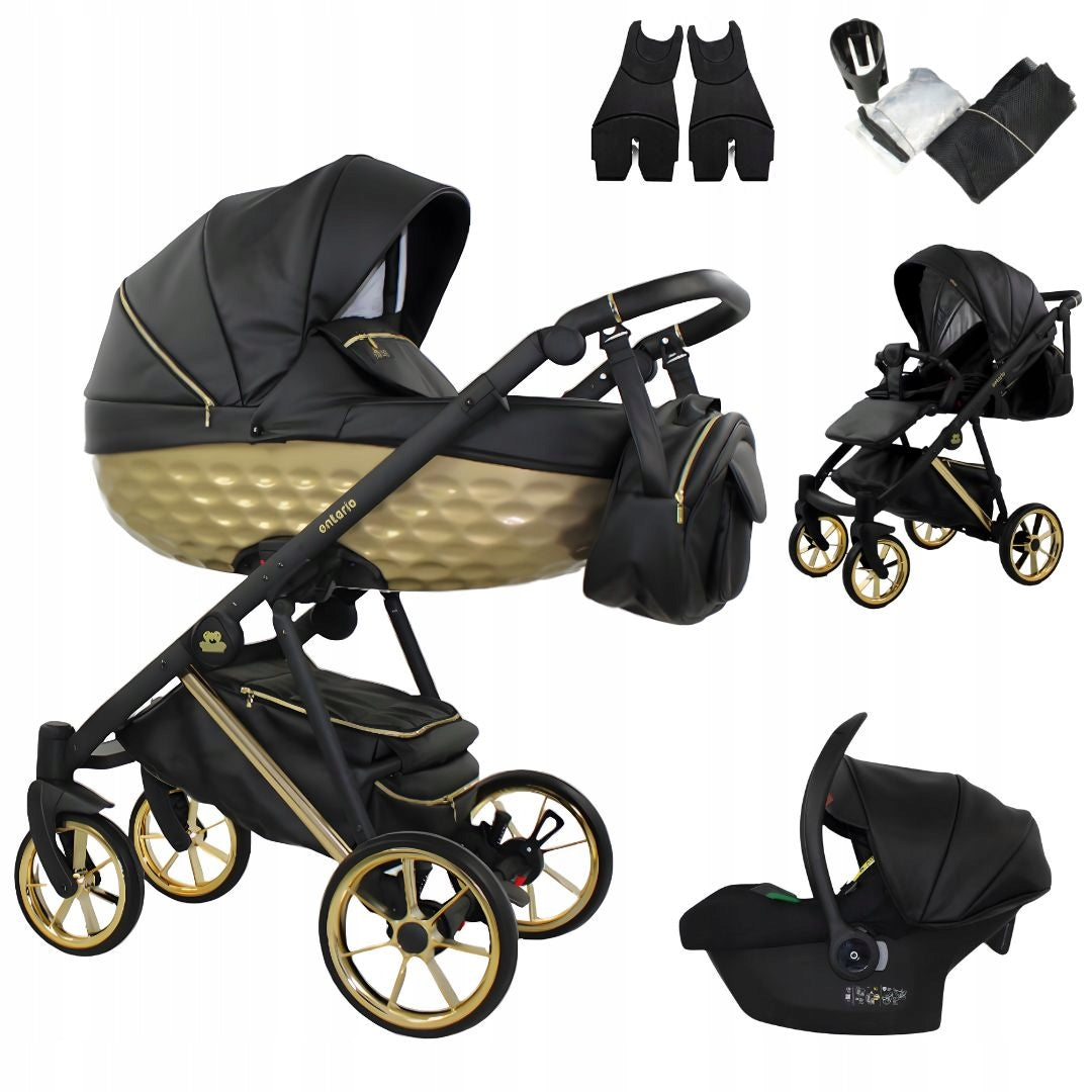 Ontario 3D Wózek dziecięcy 3w1|Black-Gold Eko-skóra Cosmo Fotelik+Adaptery