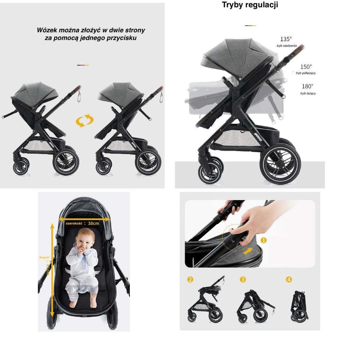 Wózek Yazoco Czarny Wielofunkcyjny 3w1 - Elegancki i funkcjonalny
