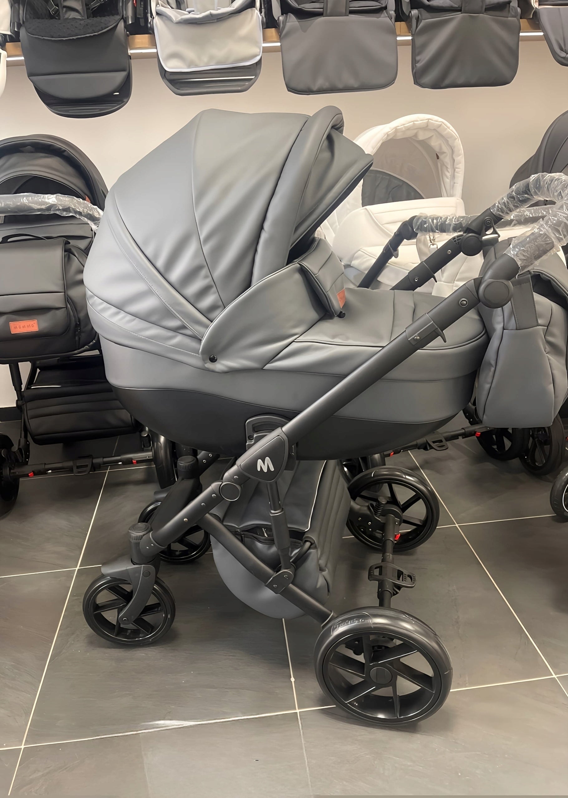 Wózek dziecięcy Mommo AAA 2w1 wielofunkcyjny| Szara Eko-skóra